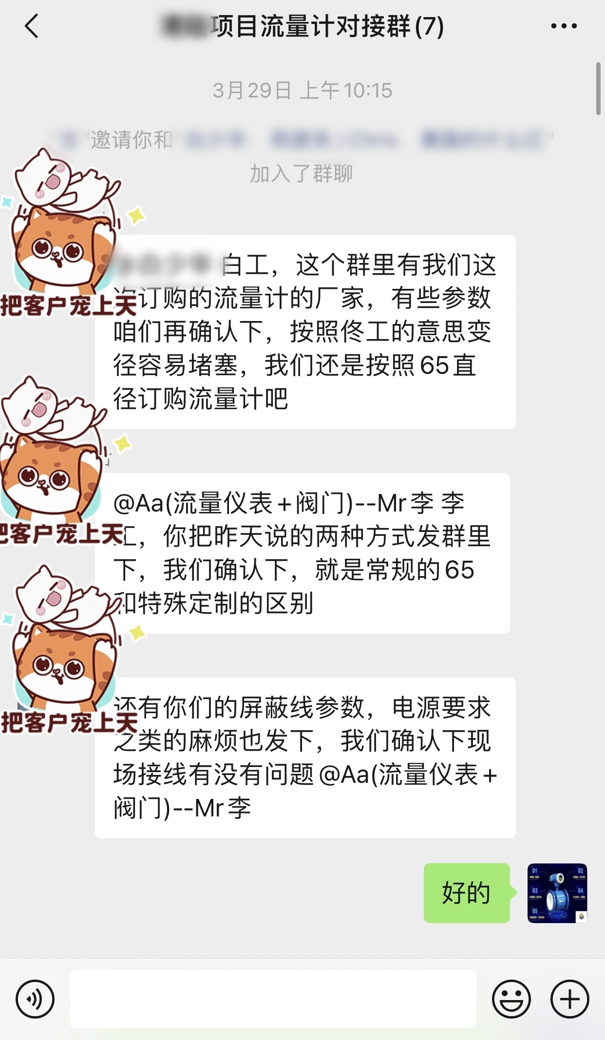 3.被之前的厂家伤了心,方方面面的技术顾虑,沟通了二十多天,只能让我们来慢慢抚平了。3月29日唐山某钢铁项目对接群组成,各种技术问题对接。